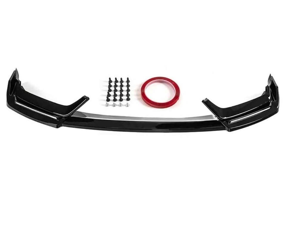 The physical mounting of the bumper lip is straightforward, as the design follows the factory bumper contours for proper alignment and secure fitment. Screws and automotive-grade adhesive tape are included to ensure the lip sits firmly in place while maintaining a clean, professional finish once installed.